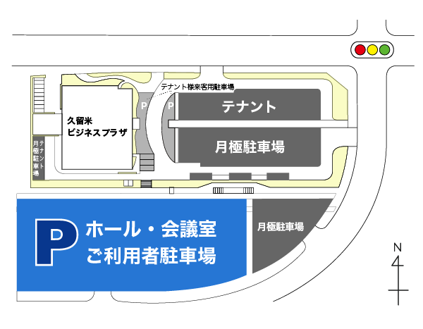 ※ホール・会議室ご利用お客様は建物南側の駐車場をご利用ください